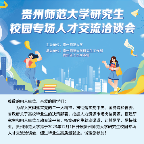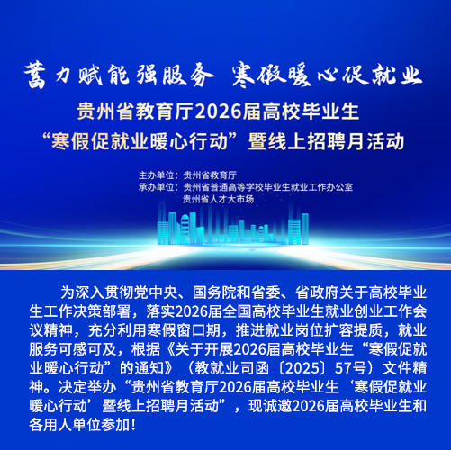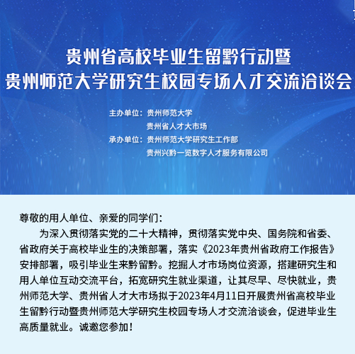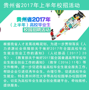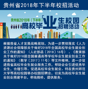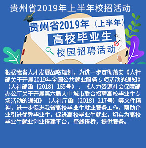 貴州省人才大市場是貴州省人力資源專業(yè)服務(wù)和招才引智的標志性窗口,本著“以人為本、服務(wù)社會、一流設(shè)施、一流水準”的宗旨,致力于提供“一體化”的專業(yè)人力資源服務(wù)。作為人力資源和社會保障部、貴州省人力資源和社會保障廳開展貴州省高校畢業(yè)生就業(yè)活動的政府公共服務(wù)平臺,貴州省人才大市場充分發(fā)揮政府人才機構(gòu)在人才交流和市場化配置中的積極作用,進一步促進貴州省高校畢業(yè)生就業(yè)服務(wù)工作,幫助企業(yè)引進優(yōu)秀畢業(yè)生,合理引導(dǎo)、促進高校畢業(yè)生就業(yè)。