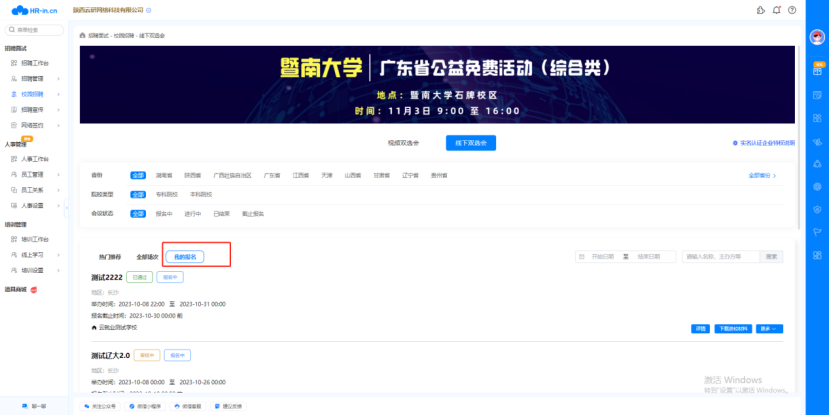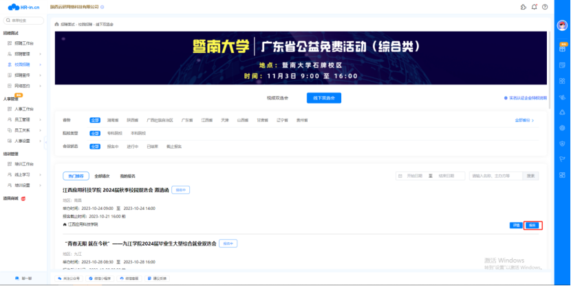 第三步:報名完成后,可在平臺“我的報名”中查看自己報名的場次。若我校審核通過,即可按時參會。