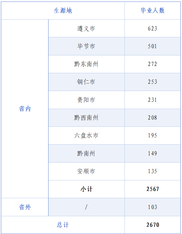?。ǘ┵F州師范大學2025屆本科畢業(yè)生生源情況