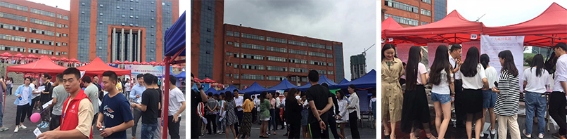 6月29日早晨, 滿載招聘企業(yè)的兩輛大巴車緩緩駛?cè)胄@,在貴州省人才大市場工作人員的引導(dǎo)下,企業(yè)招聘負(fù)責(zé)人簽到入場、領(lǐng)包入座,靜靜地等待著求職學(xué)生的到來,北京時(shí)間十點(diǎn)整,招聘會(huì)活動(dòng)正式開始,學(xué)生們也從四面八方魚貫而入,學(xué)生咨詢聲、企業(yè)解答聲、混合著畢業(yè)的笑聲,將活動(dòng)推上了一波又一波的高潮。